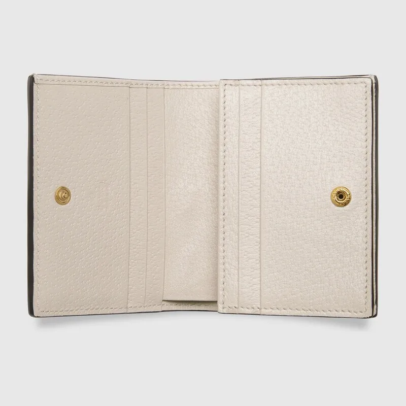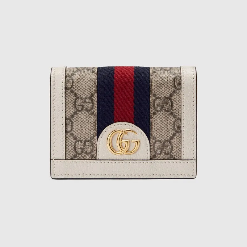 オフィディアコレクションは、レトロにインスパイアされたディテールとクラシックなブランド要素を備えた、グッチの「アリア-ファッションアリア」コレクションで再解釈されています。 レトロな雰囲気のこのカードホルダーは、ベージュとエボニーのGG Supremeキャンバスにホワイトレザーを使用し、クラシックな赤と青のストライプのウェブとアーカイブのダブルGモチーフのミニバージョンを備えています。