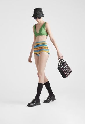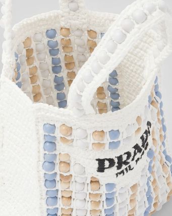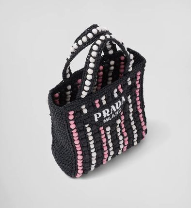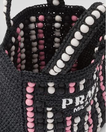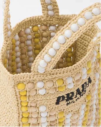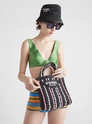 軽やかなラフィアを使用し、ビーチバッグのコンセプトを再解釈した、夏らしいヴィンテージ感のあるトートバッグ。小ぶりで洗練されたシルエットに、カラフルなウッドビーズで斬新なアクセントをプラスしました。プラダを象徴するトライアングルを新解釈してフロントに配し、レタリングロゴ刺繍をあしらったデザイン。